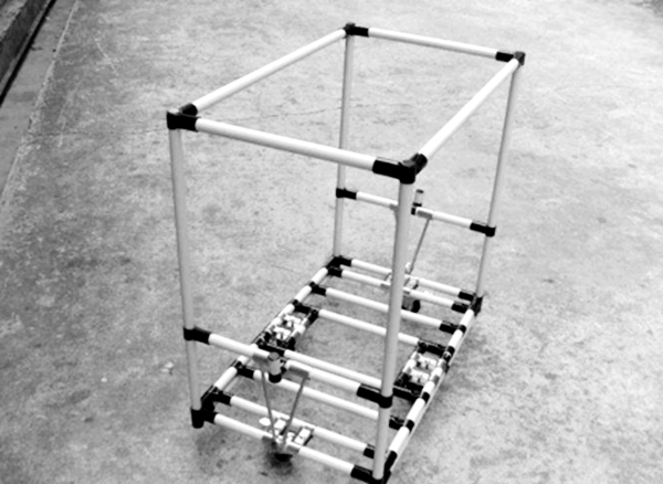 2.选好了配件和工具就可以安装了,首先是把四根铝合金立柱用螺丝固定在一块金属底板上,(每颗