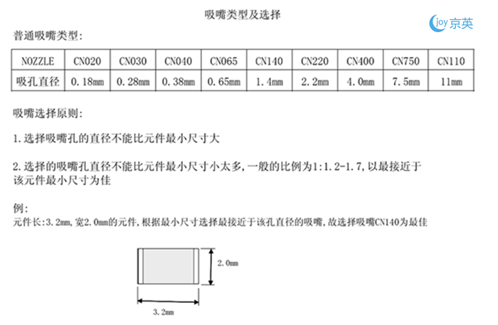 1.选择吸嘴孔的直径不能比元件最小尺寸大