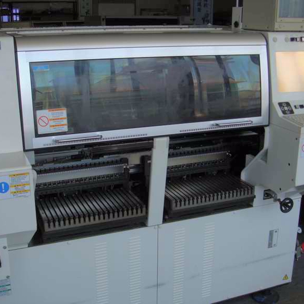 速度:0.12S, 搭载料架:80(双式编带料架160)站, 元件种类:0603-32mmQFP, 电源:3P/200V , 外型尺寸:1950/1500/1500mm, 重量:1700kg