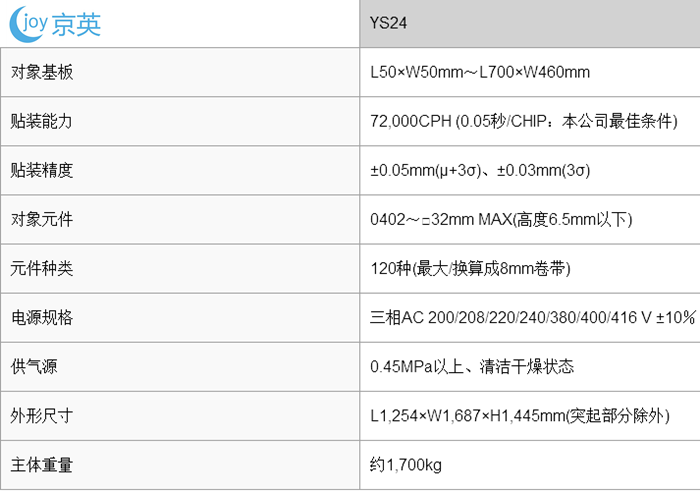72,000CPH(0.05sec/CHIP) 卓越的贴装能力 新开发的双段输送台 34kCPH/㎡ 世界顶级面积生产率 L700×W460mm 对应超大型基板 对应雅马哈双搬运轨道系统 120 最大供料器数 0402~32×32mm对应元件